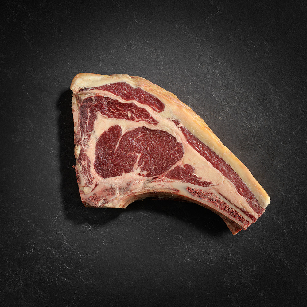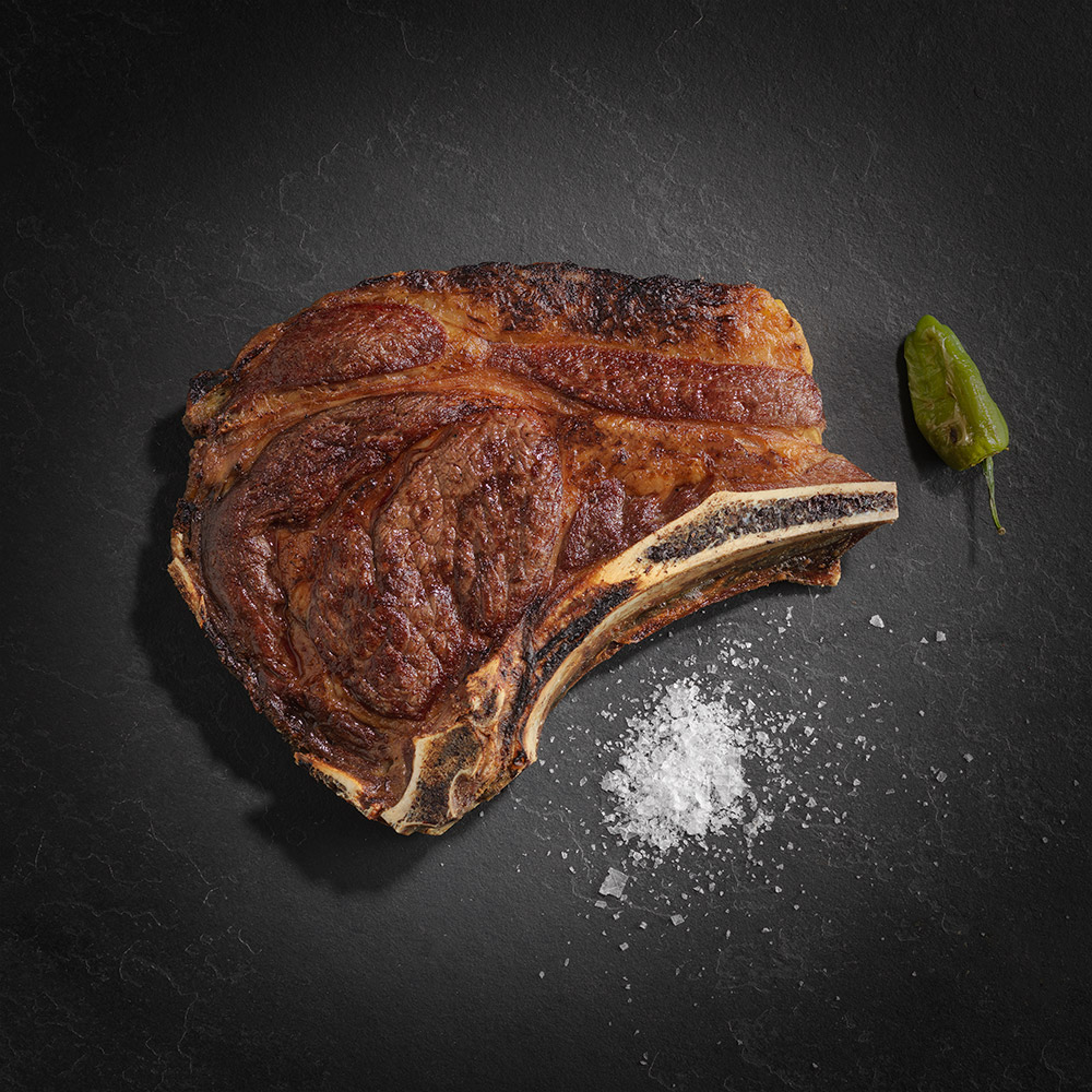 Dirigido a los verdaderos amantes de la carne, este Chuletón de raza Rubia con más de 60 días de maduración artesanal en seco (Dry Aged), posee un sabor y una textura únicos, característicos de una de las razas de vacuno más apreciadas del mercado.